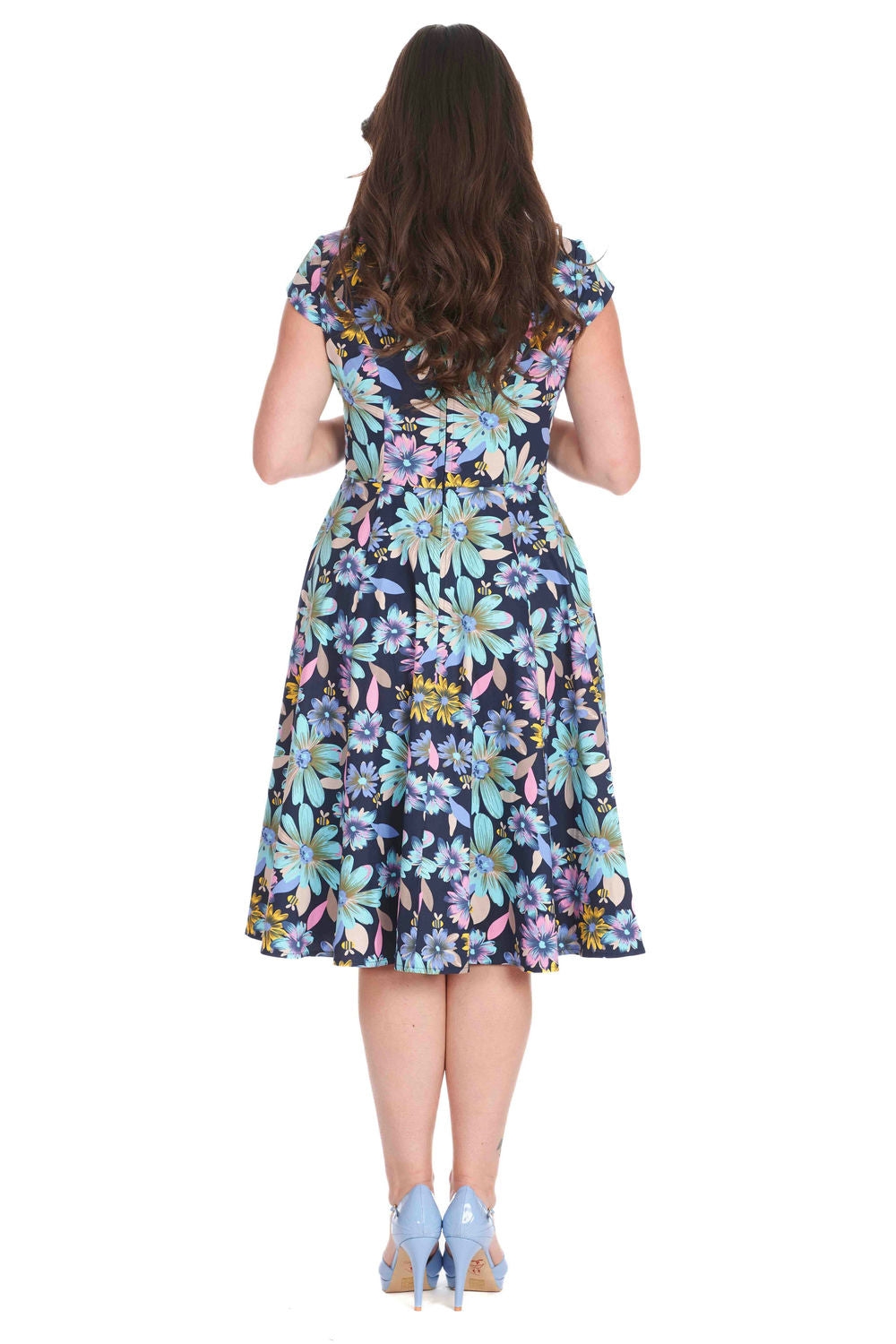 - Design: Das Summer Bee Kleid besticht durch sein elegantes Keyhole-Detail mit Knopfverschluss und ein dekoratives Lochmuster am Ausschnitt, das dem Kleid einen romantischen, femininen Touch verleiht. Die zarten Cap-Ärmel und der volle Swing-Rock sorgen für eine klassische Silhouette, die bei jedem Anlass bezaubert.